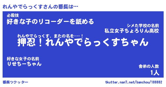 | 肩書あだ名 | 『れんやでらっくす店長』 |