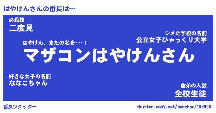 | ファンタジー風あだ名 | 『ハヤフェル』『エターナルハヤケンー』 |
