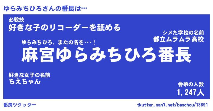 | 伝説のあだ名 | 『不死鳥のスナイパーゆらみちひろ』 |