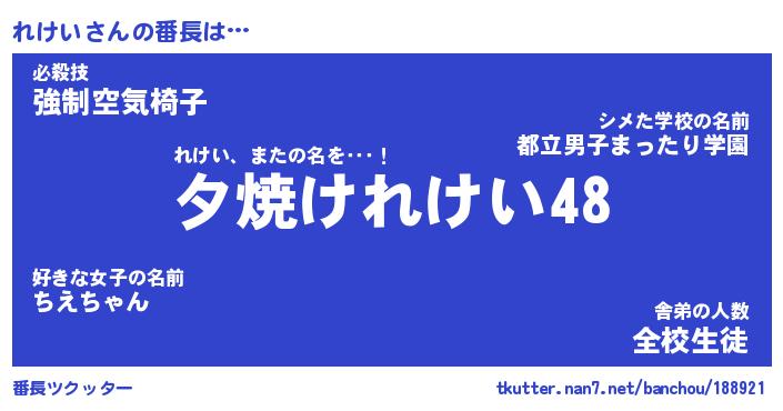 | 意味不明あだ名 | 『ペロリンれけい』『れけいフォーエバー』 |