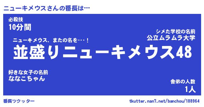 | ヒーロー風カッコイイあだ名 | 『スーパーニューキメウス』 |