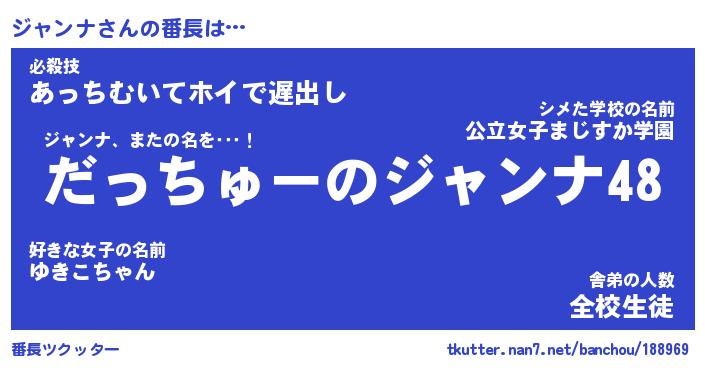 | 意味不明あだ名 | 『ペロリンジャンナ』『永久保存ジャンナ』 |