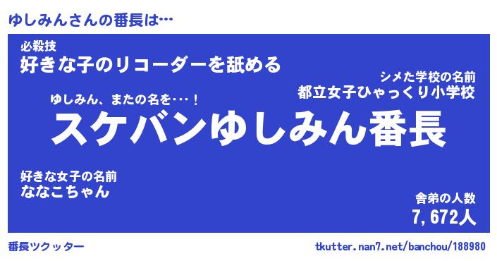 | 意味不明あだ名 | 『ペロリンゆしみん』『永久保存ゆしみん』 |