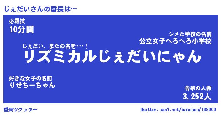 | ヘコむあだ名 | 『じぇもー』『牛乳』『じぇ太郎』 |