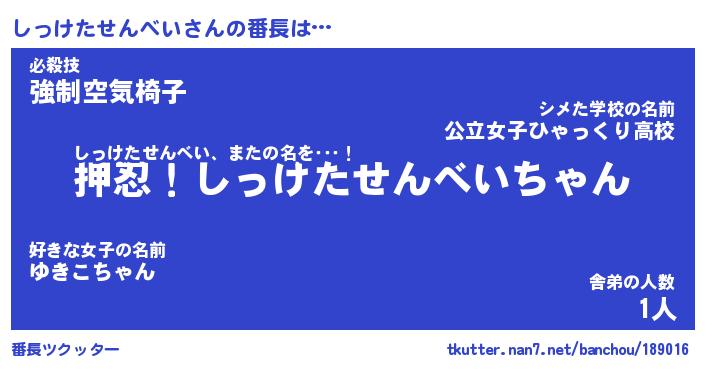 | ヒーロー風カッコイイあだ名 | 『スーパーシッケタセンベイ』 |