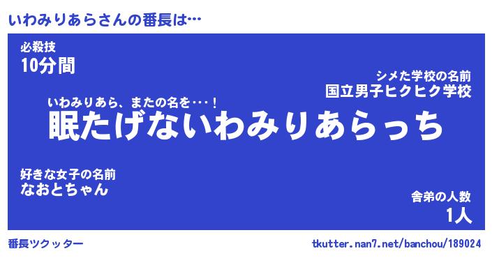 | 伝説のあだ名 | 『封印されしスナイパーいわみりあら』 |