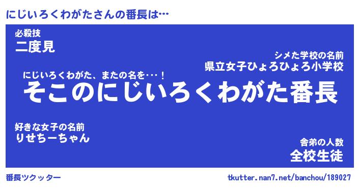 | 2回繰り返すあだ名 | 『にじにじ』『ににじじ』『うねうね』 |