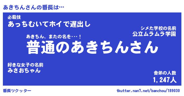 | ヒーロー風カッコイイあだ名 | 『スーパーアキチン』『天弓騎士アキ』 |
