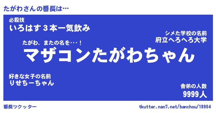 | ポケモン風あだ名 | 『タガチュウ』『タガワダネ』 |