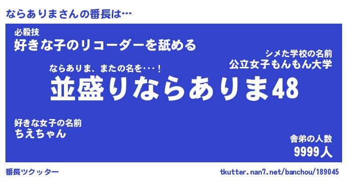 | 肩書あだ名 | 『ならありまCEO』『ならありま大統領』 |