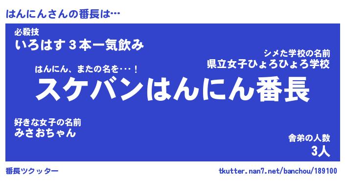 | 意味不明あだ名 | 『ペロリンはんにん』『永久保存はんにん』 |