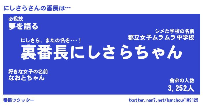 | ポケモン風あだ名 | 『ニシチュウ』『ニシサダネ』 |