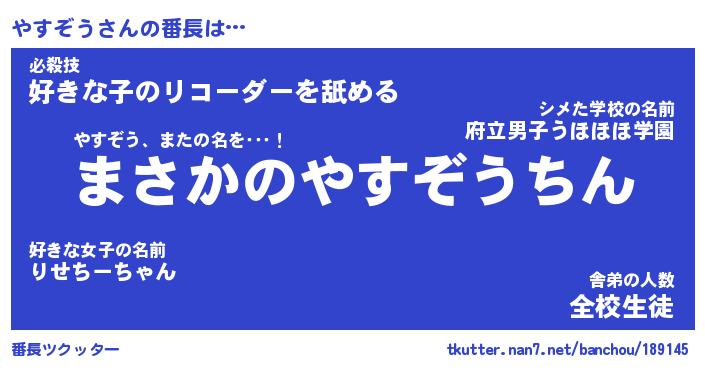 | 伝説のあだ名 | 『伝説のスナイパーやすぞう』 |