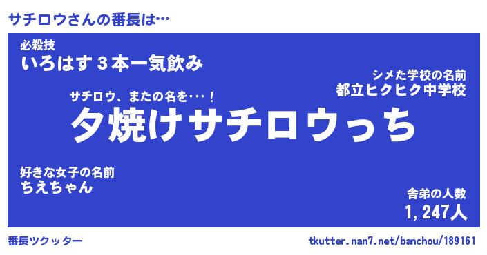 | ヒーロー風カッコイイあだ名 | 『スーパーサチロウ』『幻影騎士サチ』 |