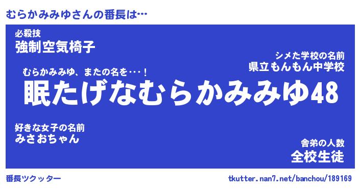 | 意味不明あだ名 | 『ペロリンむらかみみゆ』 |