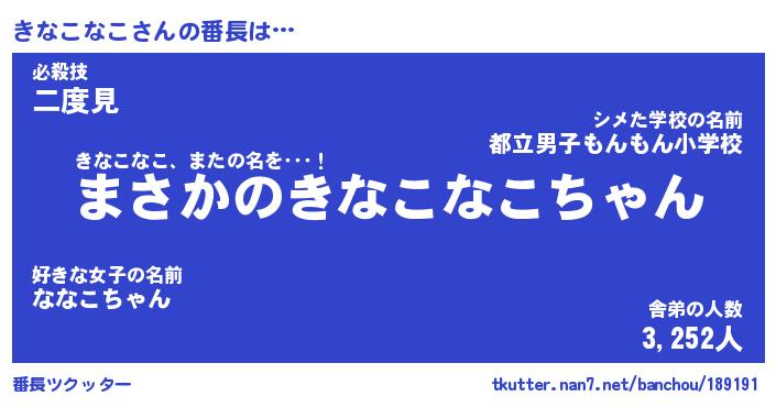 | 2回繰り返すあだ名 | 『きなきな』『ききなな』『くねくね』 |