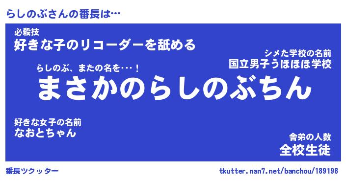 | 意味不明あだ名 | 『ペロリンらしのぶ』『永久保存らしのぶ』 |