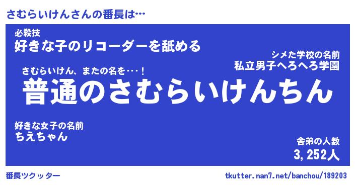 | ヒーロー風カッコイイあだ名 | 『スーパーサムライケン』『幻影騎士サム』 |