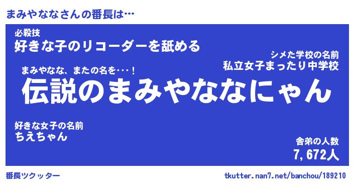 | 肩書あだ名 | 『まみやなな社長』『まみやなな国家主席』 |