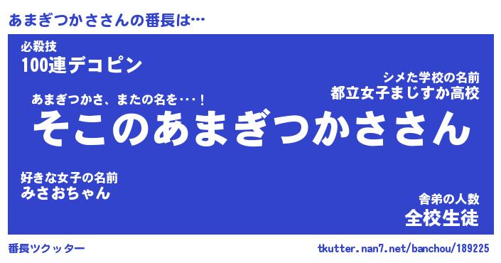 | ヒーロー風カッコイイあだ名 | 『スーパーアマギツカサ』『暗黒騎士アマ』 |
