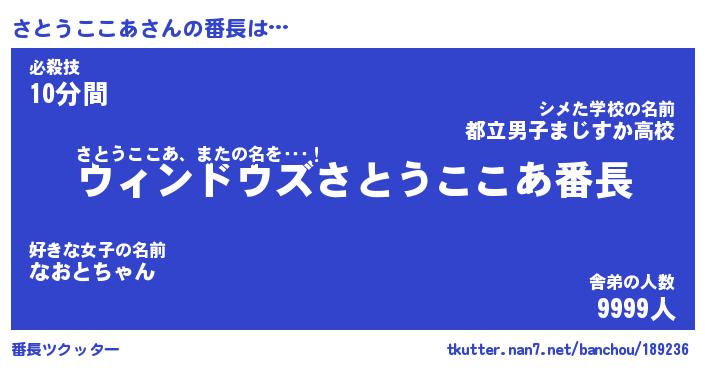 | 伝説のあだ名 | 『伝説のスナイパーさとうここあ』 |