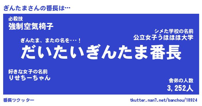 | 意味不明あだ名 | 『ペロリンぎんたま』『永久保存ぎんたま』 |