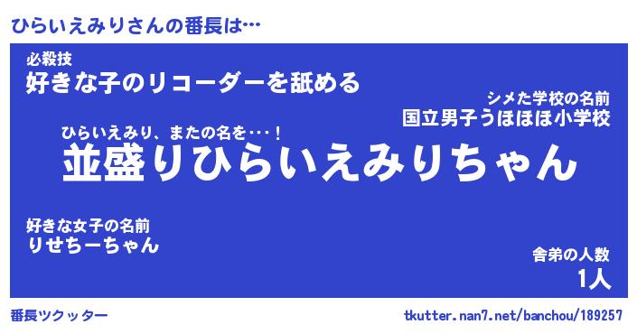 | ヒーロー風カッコイイあだ名 | 『スーパーヒライエミリ』『幻影騎士ヒラ』 |