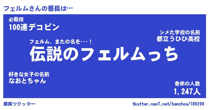 | ポケモン風あだ名 | 『フェチュウ』『フェルダネ』 |