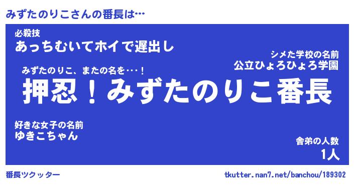 | ヒーロー風カッコイイあだ名 | 『スーパーミズタノリコ』『黄金騎士ミズ』 |