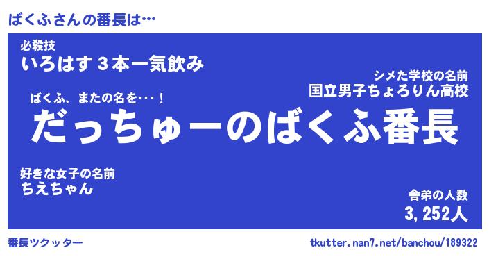 | ヒーロー風カッコイイあだ名 | 『スーパーバクフ』『ウルトラばくふマン』 |