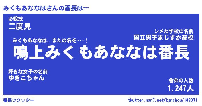 | 2回繰り返すあだ名 | 『みくみく』『みみくく』『ねちねち』 |