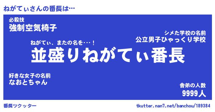 | 肩書あだ名 | 『ねがてぃ御曹司』『ねがてぃ総理大臣』 |