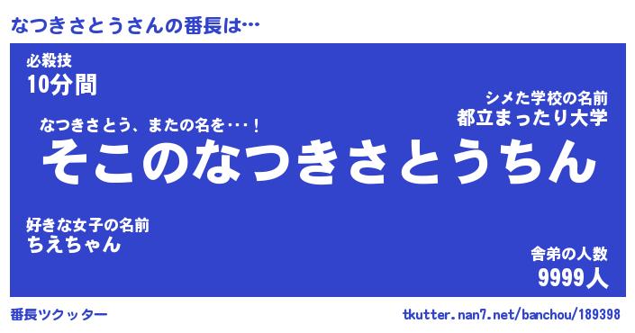 | 肩書あだ名 | 『なつきさとう社長』『なつきさとう団長』 |