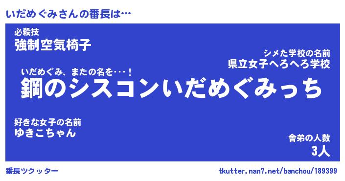 | ピコ太郎風あだ名 | 『イコ次郎』『ピイ五郎』『イダ八郎』 |