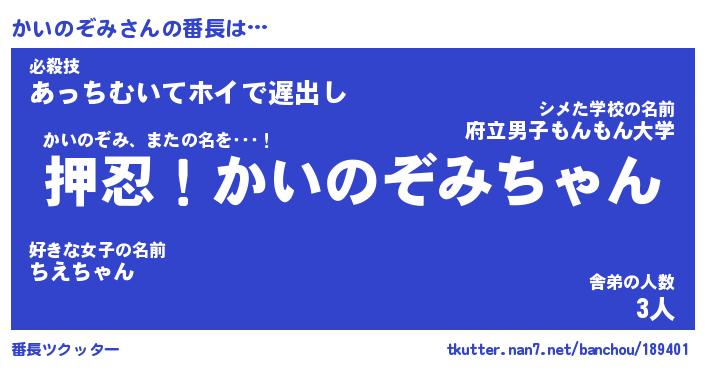 | ヒーロー風カッコイイあだ名 | 『スーパーカイノゾミ』『魔戒騎士カイ』 |