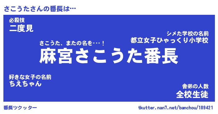 | 肩書あだ名 | 『さこうた社長』『さこうた国家主席』 |