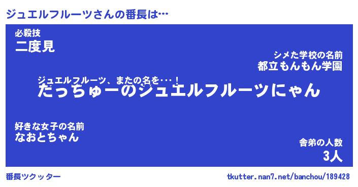 | 肩書あだ名 | 『ジュエルフルーツ社長』 |