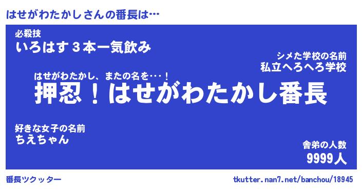 | ヘコむあだ名 | 『はせもー』『なまこ酢』『はせっ子』 |