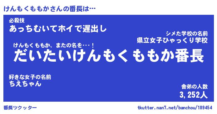 | 伝説のあだ名 | 『不死鳥のスナイパーけんもくももか』 |