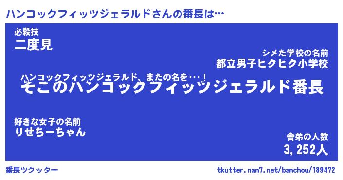 | 男性向けラノベタイトル風あだ名 | 『ハンコックフィッツジェラルドの憂鬱』 |