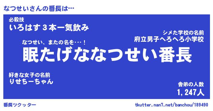 | 伝説のあだ名 | 『封印されしスナイパーなつせい』 |