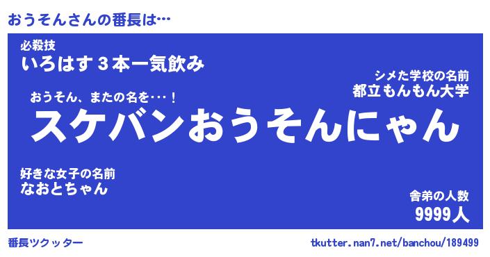 | 意味不明あだ名 | 『ペロリンおうそん』『永久保存おうそん』 |
