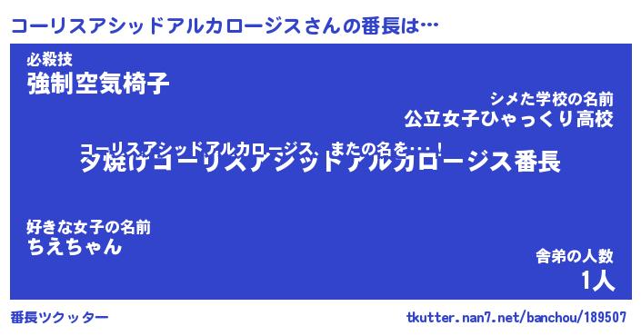 | 欧米人風あだ名 | 『マイケルコーリスアシッドアルカロージス』 |
