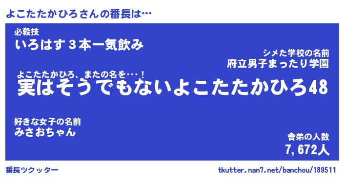 | 意味不明あだ名 | 『ペロリンよこたたかひろ』 |