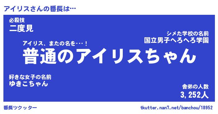 | ヒーロー風カッコイイあだ名 | 『スーパーアイリス』『幻影騎士アイ』 |