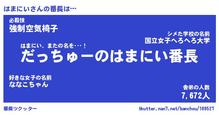 | 肩書あだ名 | 『はまにい店長』『はまにい総理大臣』 |