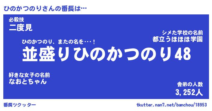 | 男性向けラノベタイトル風あだ名 | 『ひのかつのりの憂鬱』 |
