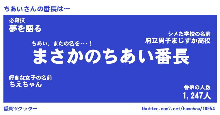 | ヒーロー風カッコイイあだ名 | 『スーパーチアイ』『ウルトラちあいマン』 |