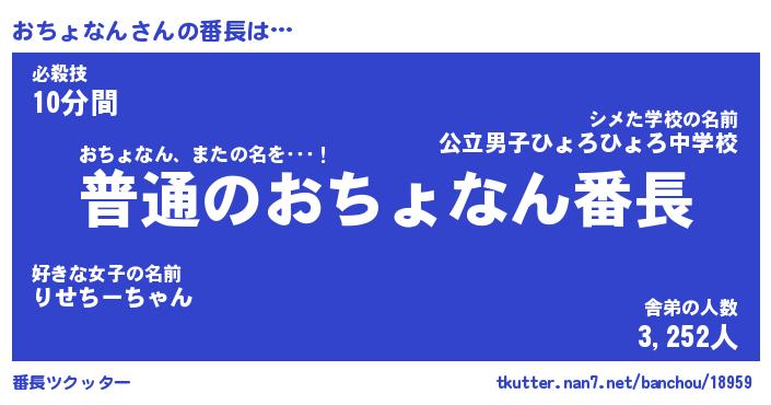 | 男性向けラノベタイトル風あだ名 | 『おちょなんの憂鬱』 |