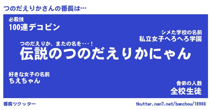 | 意味不明あだ名 | 『ペロリンつのだえりか』 |